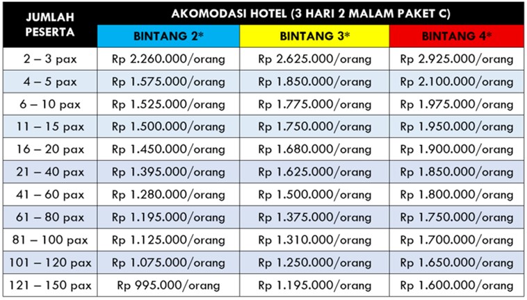 Saya berminat Paket Tour C untuk 3 hari 2 malam.